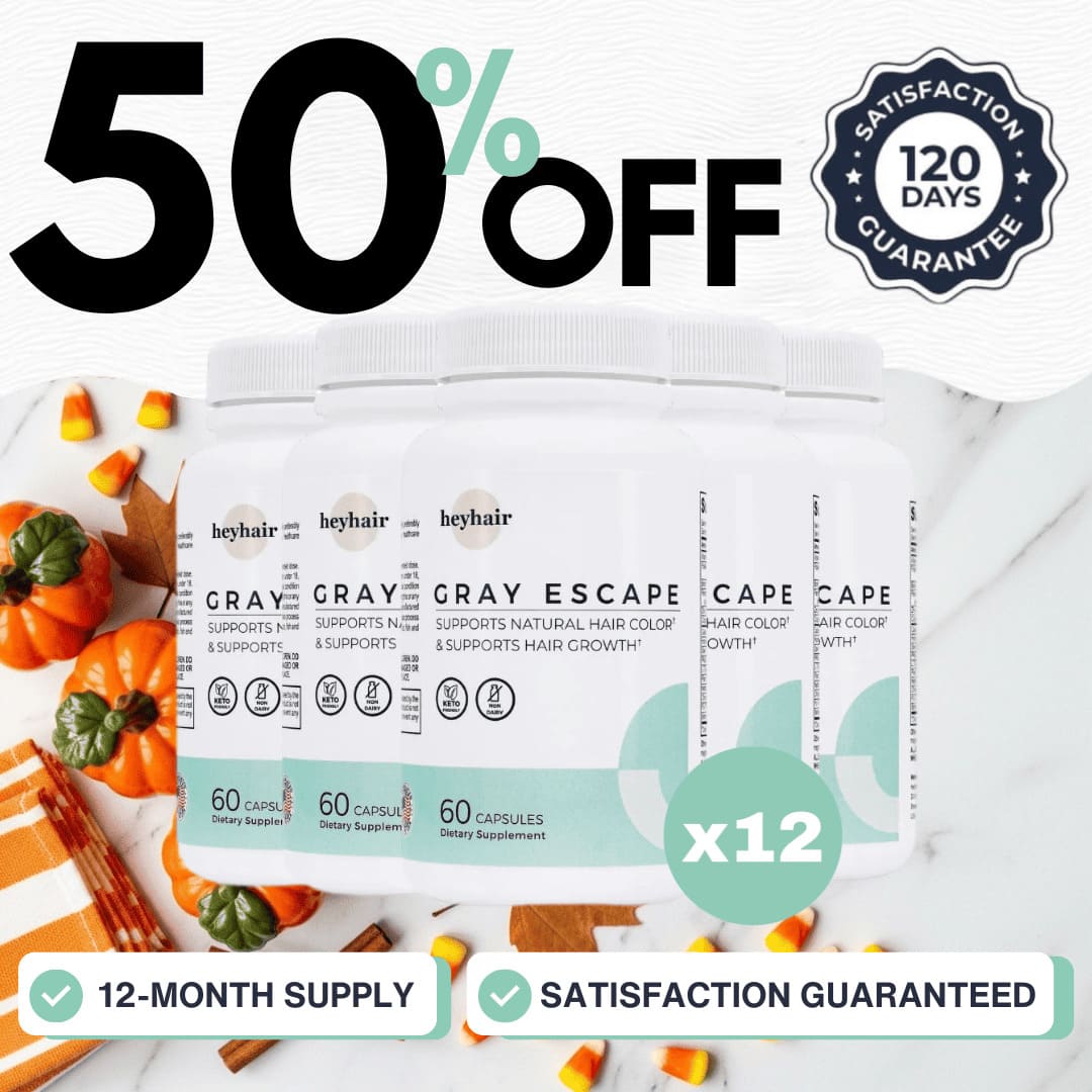 "I was skeptical at first, but around week 9 I noticed fewer grays near my part and temples. By month 4 they were barely visible. My hair also feels softer and stronger than it has in years. It’s given me so much confidence back and taking Gray Escape has become a daily routine I don’t want to miss."