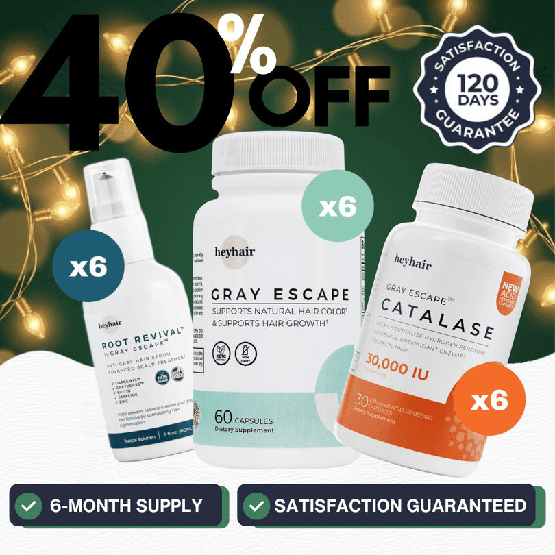 "I was skeptical at first, but around week 9 I noticed fewer grays near my part and temples. By month 4 they were barely visible. My hair also feels softer and stronger than it has in years. It’s given me so much confidence back and taking Gray Escape has become a daily routine I don’t want to miss."
