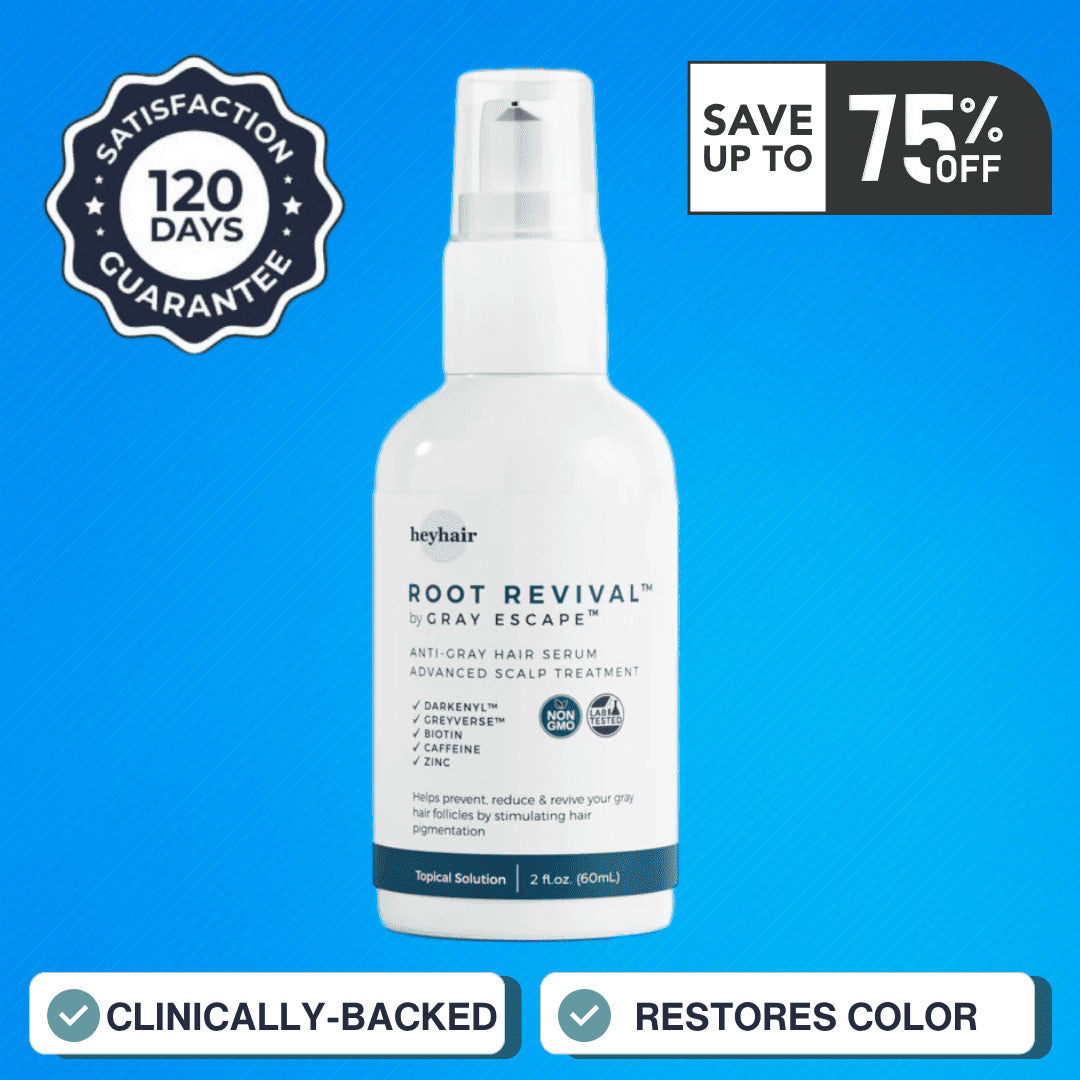 Root Revival™ is formulated with vitamins, plant-based actives, and peptides clinically shown to dramatically reduce the appearance of gray on new hair growth, while renewing color and shine in as little as 90 days (3 months).