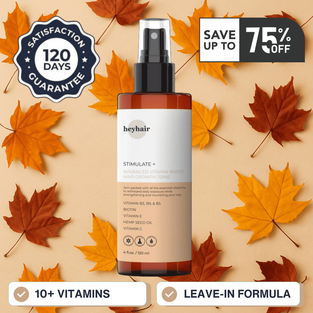 Our advanced STIMULATE+ formula comes with over 10 B-Vitamins, natural DHT blockers and nourishing extracts to help your hair grow naturally and protect it from heat and environmental exposure.